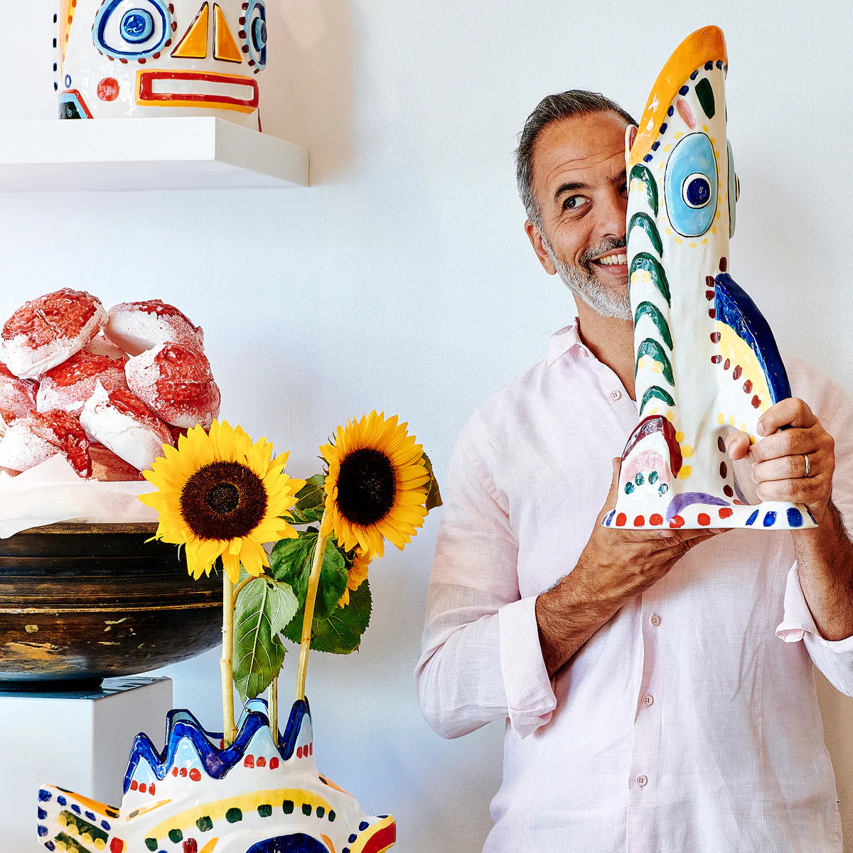The collection is based on the Testa di Moro - Sicilian hand painted ceramic pots in the shape of crowned heads that adorn Italian balconies. Combined with the Ottolenghi exuberance and decorated with colourful spots and brush strokes in an eclectic palette of primary and secondary colours, the vases are a cheerful ode to a distinctly Sicilian aesthetic.